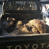 a fine battuta arrivano i pick up che hanno recuperato i cinghiali abbattuti