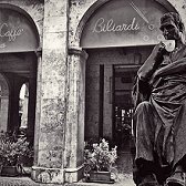 Ovidio Nasone in pausa caffè a Sulmona davanti al Caffè Europa