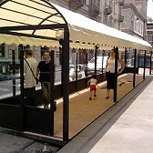 Dehors mod tunnel con vetri centinati h180 Metallo e alluminio vetro e tessuto pavimentazione in porfido Visibile in torino corso san maurizio caffe san giorgio